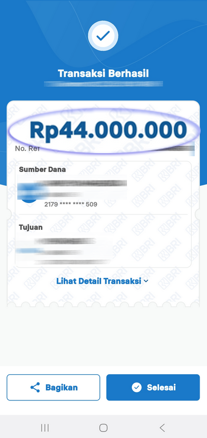 Berikut bukti struk pengiriman dana yang telah dikirim ke rekening member