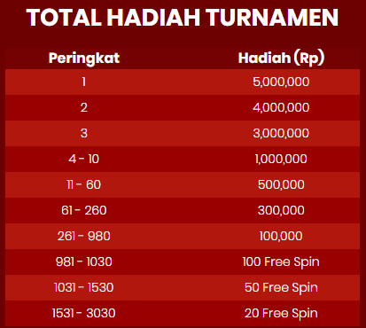 3. Hadiah akan dikirimkan ke saldo permainan Spadegaming dalam 72 jam setelah turnamen berakhir.